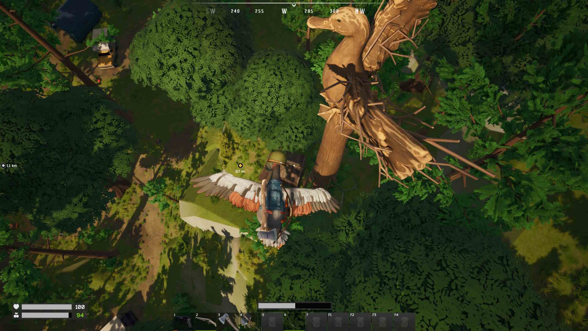 Las mecánicas de combate son sorprendentemente estratégicas y satisfactorias. Los patos pueden empuñar una amplia variedad de armas, desde ametralladoras y escopetas hasta granadas y hasta lanzacohetes. El combate puede ser tanto ridículo como táctico, especialmente cuando se aprovechan las ventajas del vuelo para maniobras aéreas durante los enfrentamientos. El sistema de crafting robusto permite a los patos adaptarse y prosperar, creando desde herramientas básicas hasta armas sofisticadas y estructuras defensivas. Los materiales se obtienen a través de la exploración del mundo abierto, la caza de NPCs humanos, o el saqueo de otros jugadores derrotados. La variedad de elementos crafteable es impresionante y permite múltiples estilos de juego.