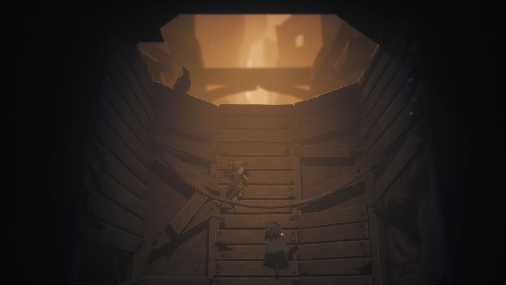 Visualmente, Little Nightmares 3 es la entrega más poderosa y variada de la saga. Aunque no utiliza el Unreal Engine 5, Supermassive ha personalizado el Unreal Engine 4 para conseguir una iluminación volumétrica y una profundidad de campo impresionantes. Los efectos de luz y sombra adquieren un papel protagonista, especialmente en el uso de la linterna, que no sólo ilumina, sino que revela detalles narrativos ocultos.