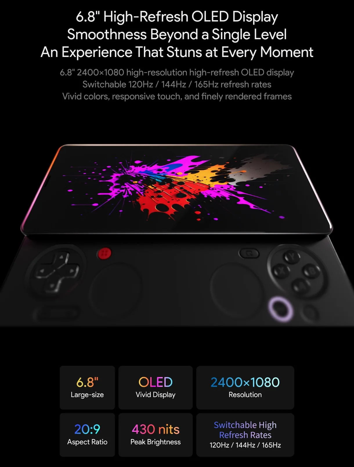 - 6.8-inch 165Hz OLED Display