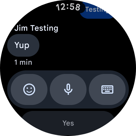 En la vista de conversación, se pueden apreciar las mayores actualizaciones, con los elementos como emojis, micrófono y teclado ahora organizados dentro de un contenedor. Las respuestas sugeridas, como «Sí», «No» y «Aceptar», se muestran agrupadas en lugar de ser botones independientes, y el rediseño también incorpora las nuevas confirmaciones de lectura. Estos ajustes forman parte de la modernización de la aplicación antes del gran rediseño de Wear OS 6 en el Pixel Watch.