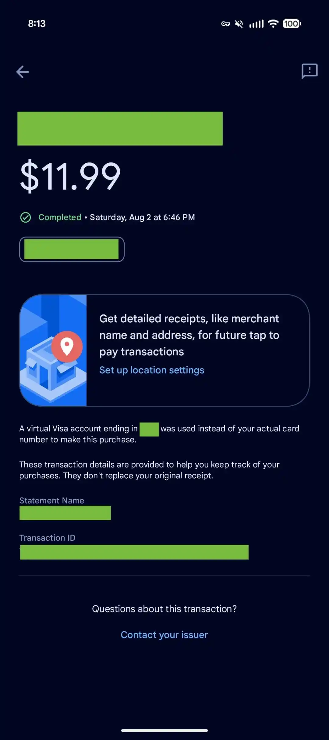 El cambio, que se implementó a finales de julio o principios de agosto, ha hecho que los recibos recientes de muchos usuarios solo muestren el costo, la fecha y la información básica de la transacción, eliminando el mapa que aparecía en la parte superior. Al seleccionar una transacción reciente, Google Wallet te presenta un mensaje que te invita a «Configurar ubicación» para acceder a estos detalles.