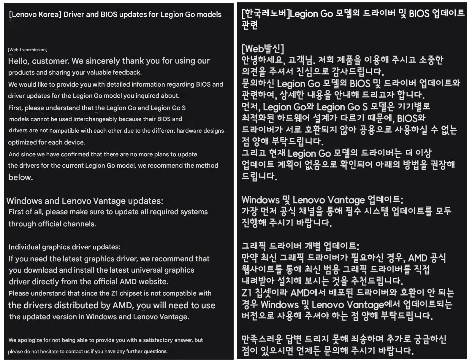 Lo más sangrante del asunto es que la Legion Go S, que monta un chip Z2 Go con arquitectura más antigua, no parece tener estos problemas y sigue recibiendo sus parches con total normalidad. Es difícil de explicar por qué Lenovo ha decidido dejar en la estacada a una plataforma que, técnicamente, es más moderna, aunque el lanzamiento de la serie Z1 de AMD fuera anterior cronológicamente al de la línea Z2. Al final, los usuarios que dependen de los paquetes validados por el fabricante son los que salen perdiendo.