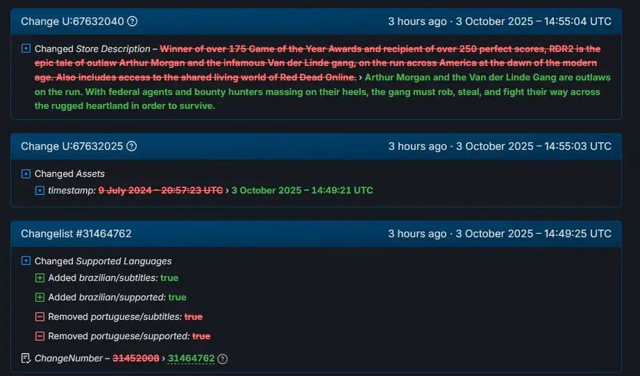Recientemente, se ha observado una actualización en la entrada de SteamDB para Red Dead Redemption 2. Este cambio, detectado por el usuario de X BeskInfinity, revela una modificación en la descripción del juego en la tienda de Steam. La antigua descripción, que mencionaba los premios del juego y el acceso a Red Dead Online, ha sido reemplazada por un texto que profundiza en la lucha moral de Arthur Morgan y la difícil situación de la banda de Van der Linde. Además, se hace hincapié en los temas de honor y lealtad en los albores de la era moderna.